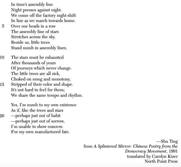 The use of the word "public" in line 23 emphasizes the narrator's feeling of