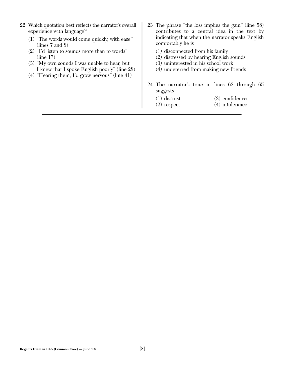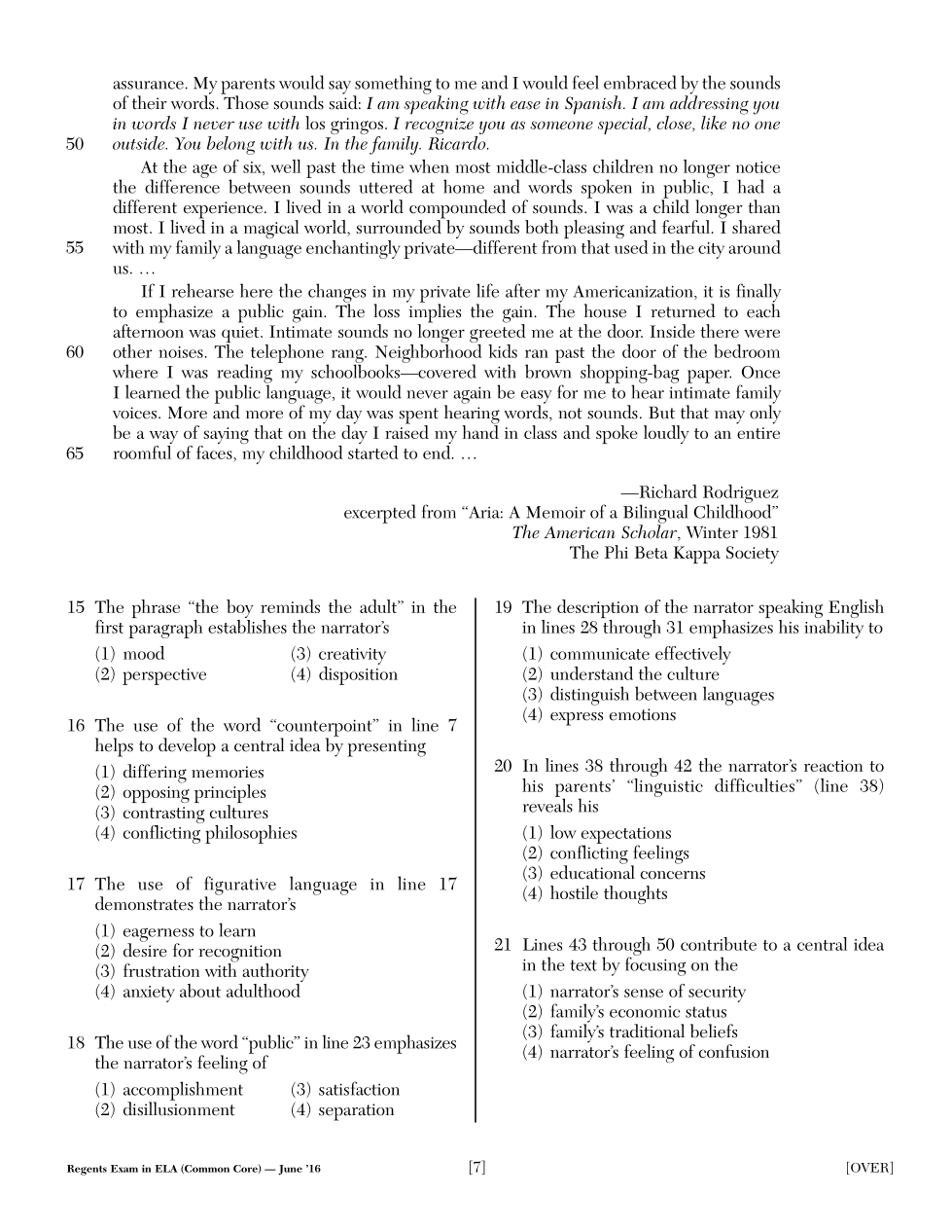 The phrase “the loss implies the gain” (line 58) contributes to a central idea in the text by indicating that when the narrator speaks English comfortably he is