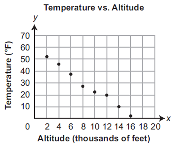 The number of students, y, still participating in the final round of a school spelling bee compared to the number of spelling words attempted, x, can be represented by a scatter plot with a negative, linear association. Which equation for a line of best fit could be used to represent the number of students still participating in the final round of the school spelling bee given a number of spelling words attempted?