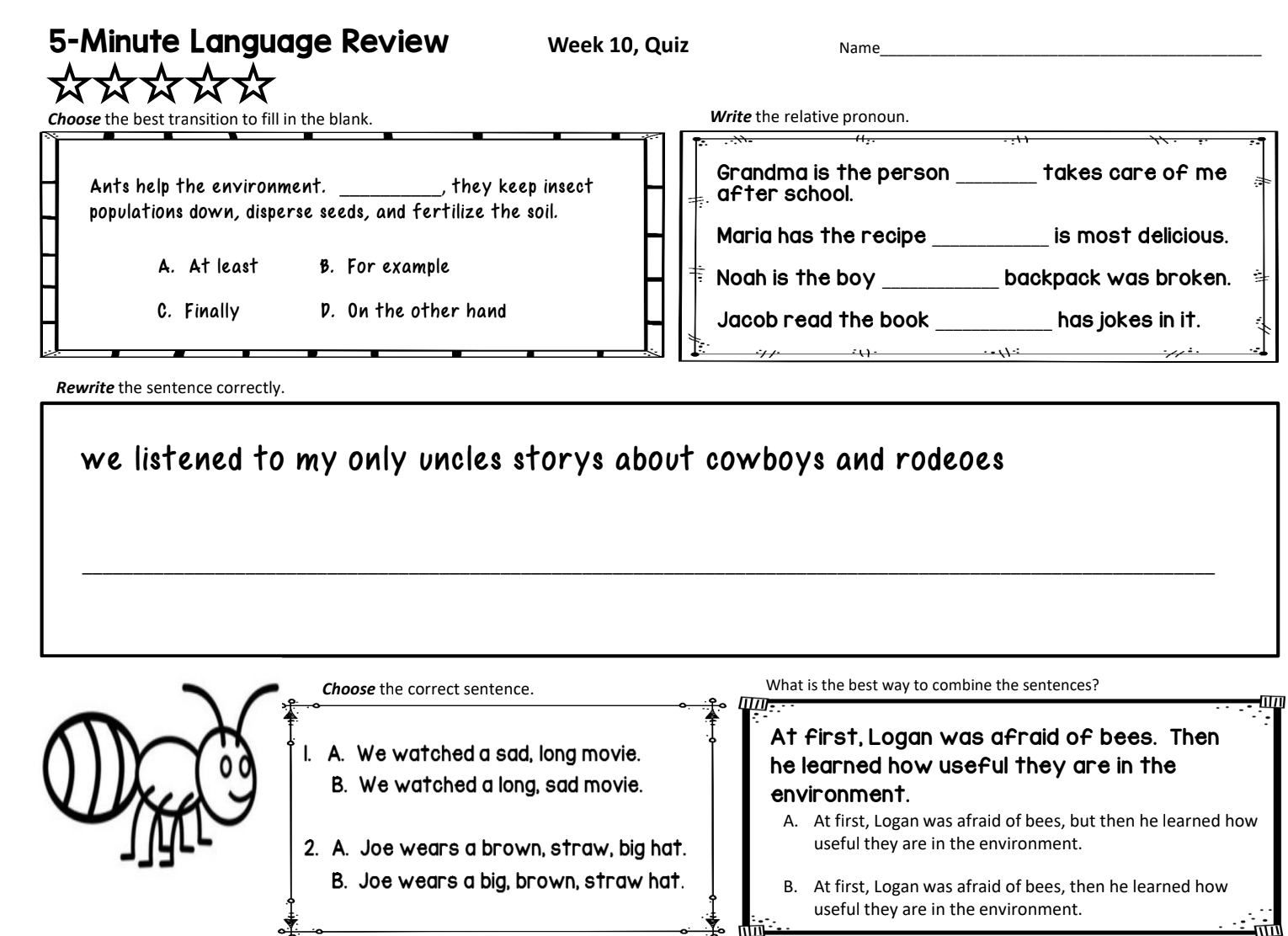 Ants help the environment. __________, they keep insect populations down, disperse seeds, and fertilize the soil.