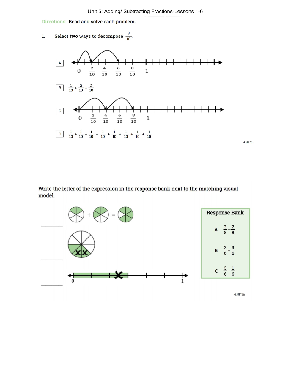 Unit 5: Adding/ Subtracting Fractions-Lessons 1-6