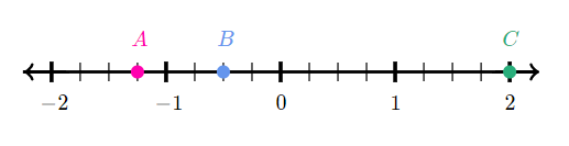 Looking at the number line below, what number is point B at? * Your answer may be a decimal or a fraction*
