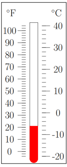 What is the degrees shown in CELSIUS (C) on the thermometer below?
