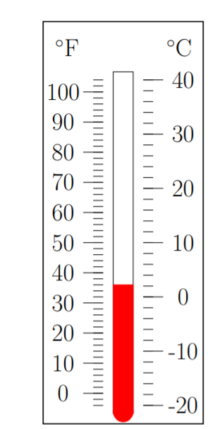 What is the degrees shown in FAHRENHEIT (F) on the thermometer below?