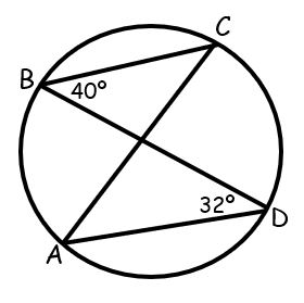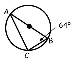 In the diagram below, m\angle{B} = 64o. Find the measure of Arc BC.