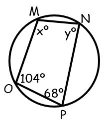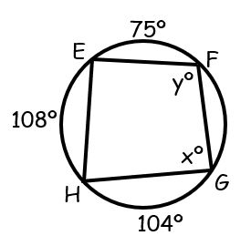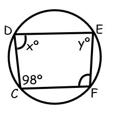 Using the diagram below, find the values of x and y. Write your answer as x=#, y=#