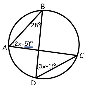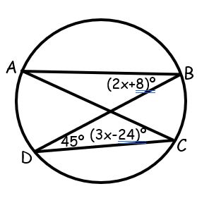 Using the diagram below, find m\angle{A} and m\angle{C}. Write your answer as A=#, C=#