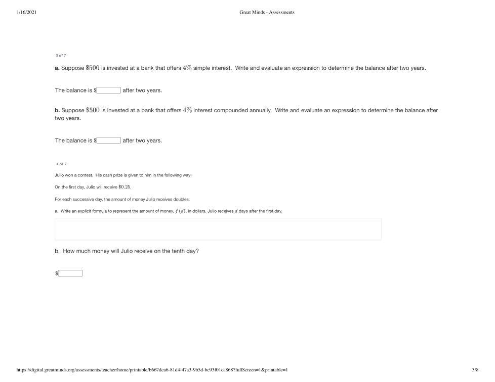 b. Suppose $500 is invested at a bank that offerest 4% interest compounded annually. Write and evaluate an expression to determine the balance after 2 years.