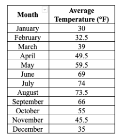 Use your answer from above to find the month with the average temperature closest to 10°C (degrees Celsius) ?