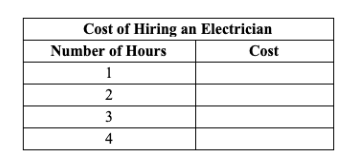 Mr. Rodriguez hired an electrician to update several electrical outlets in his home. The electrician charges $80 plus $45 an hour or any fraction of an hour. Let x represent the number of hours that the electrician works. The total cost, f(x), can be represented by the function f(x) = 80 + 45x.