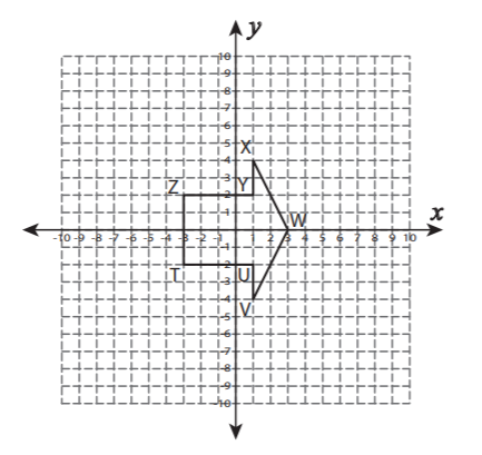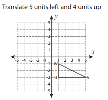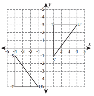 Describe (in words) a series of transformations that takes pre-image triangle STU to triange S'T'U'.