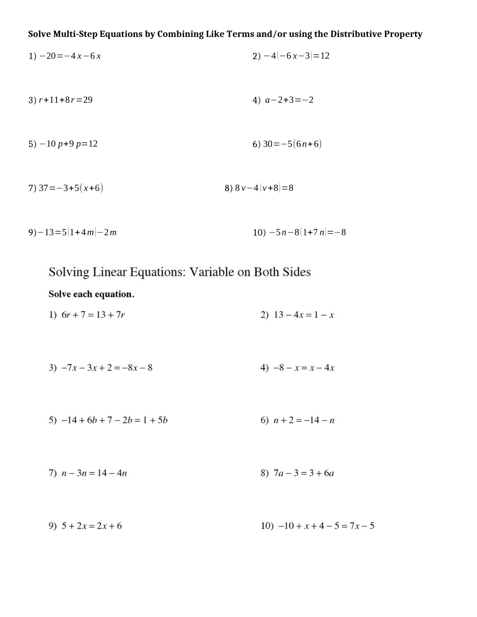 Variables on Both Sides (GT)