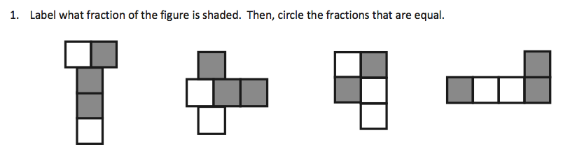 Label what fraction of the figure is shaded. Then, circle the fractions that are equal.