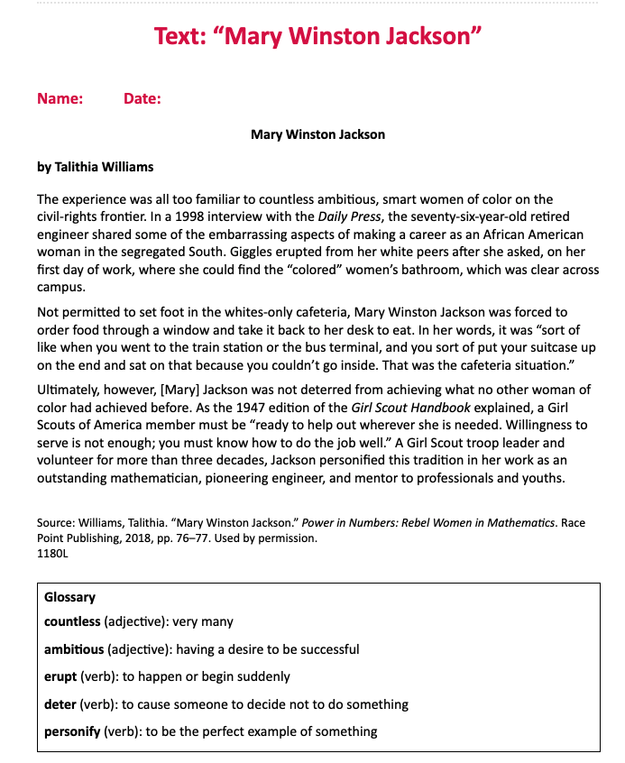 How is the authors' of Hidden Figures point of view DIFFERENT than the author of "Mary Winston Johnson"?