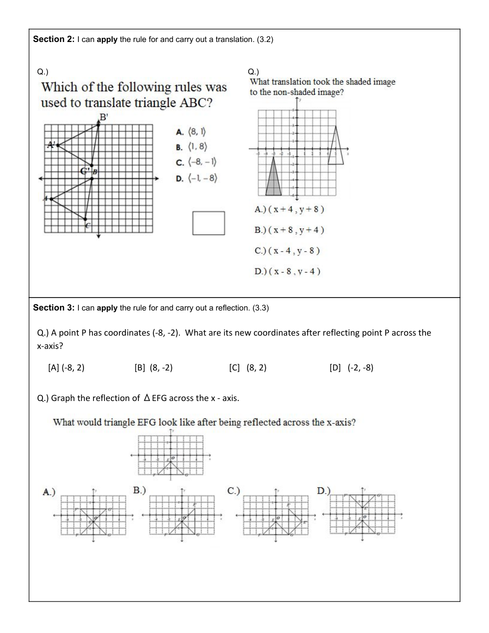 A point P has coordinates (-8,2). What are its new coordinates after reflecting point P across the x-axis?