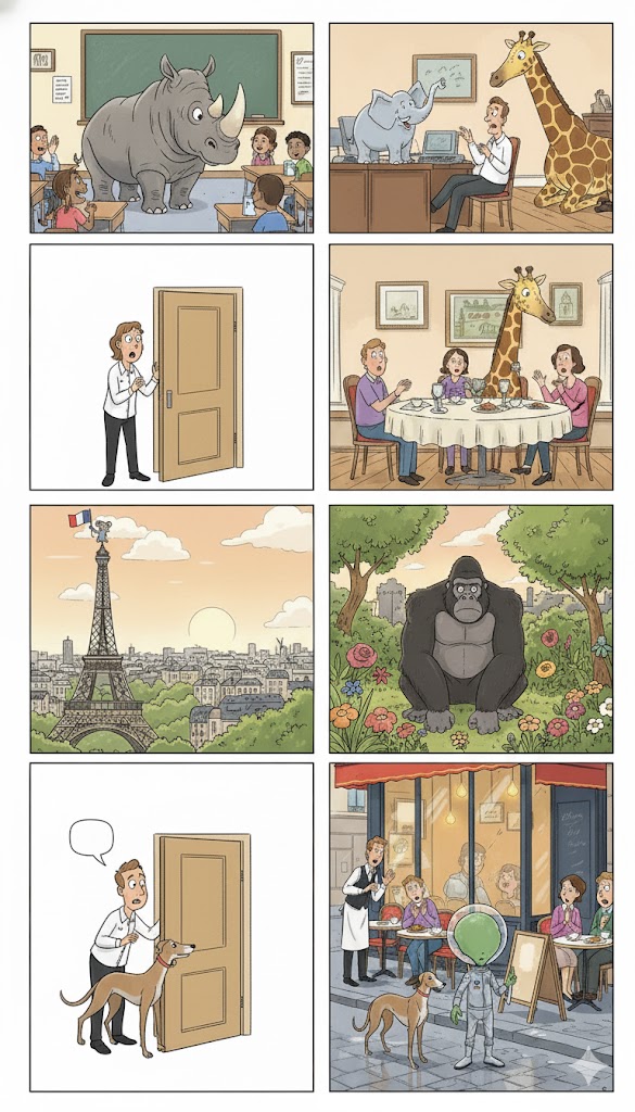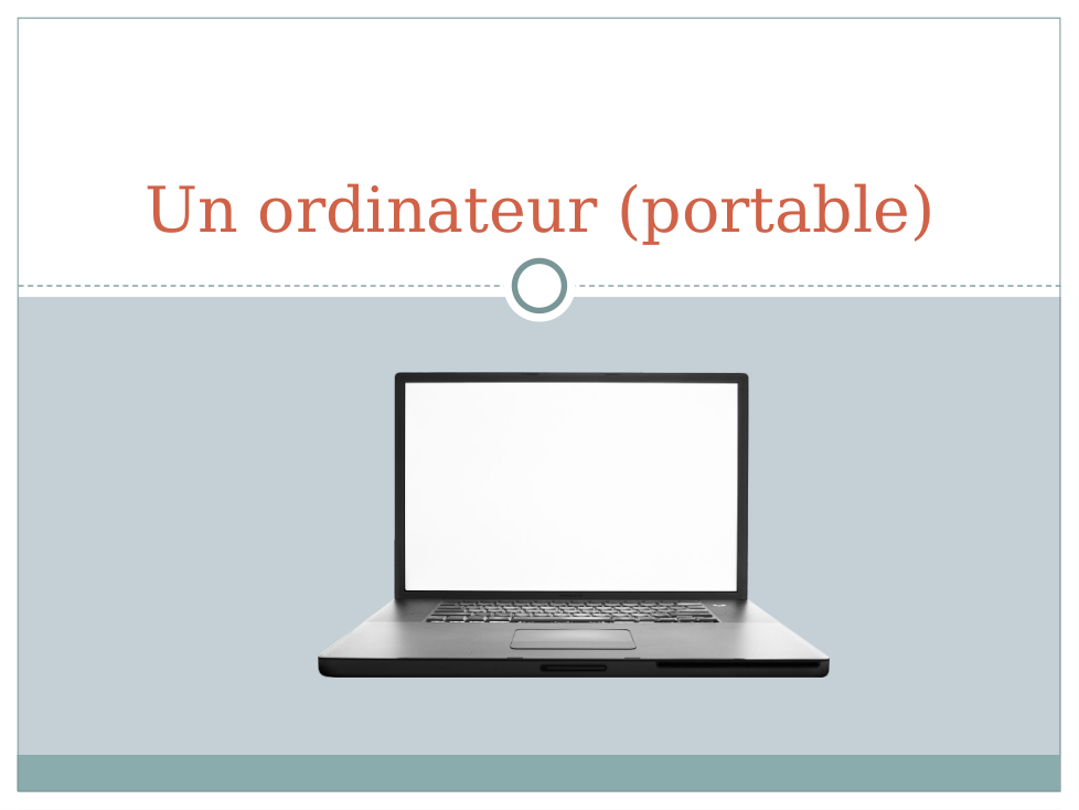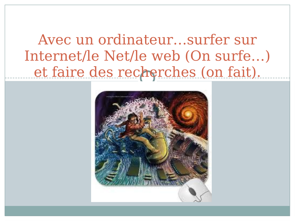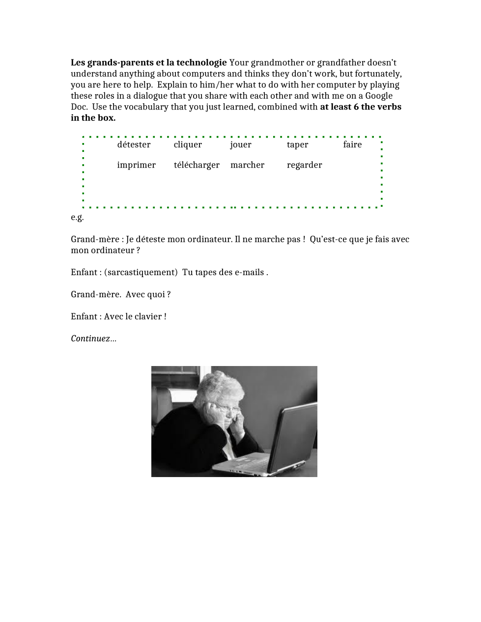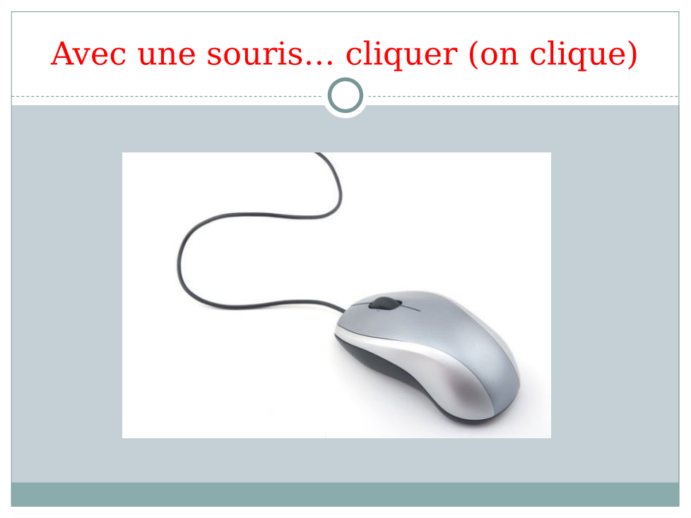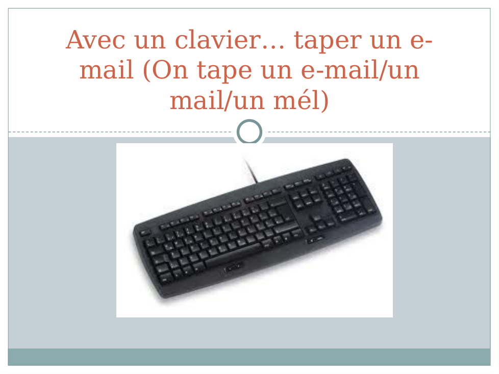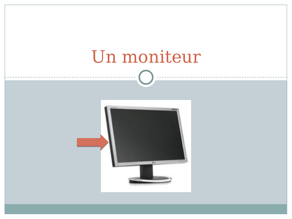 e.g. Dans la salle de classe est Mickey. Il y a un livre sur le bureau. Aussi, l'ordinateur est à gauche de la télé, mais la télé est devant la salle de classe...