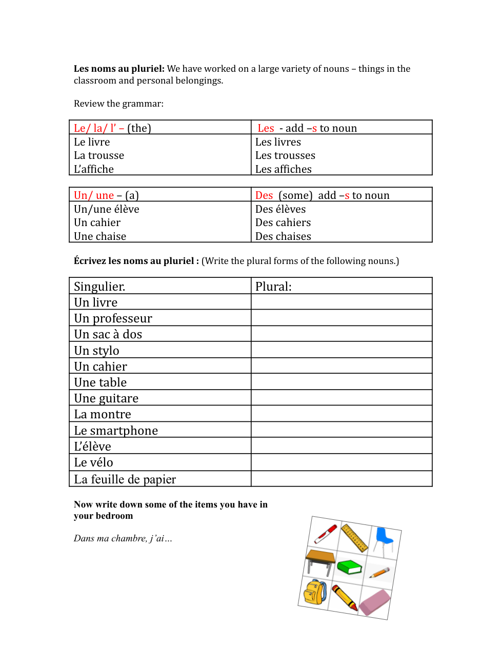Write a short paragraphe (3-5 lines) that describes where things in this classroom are located in relation to each other, then share them.