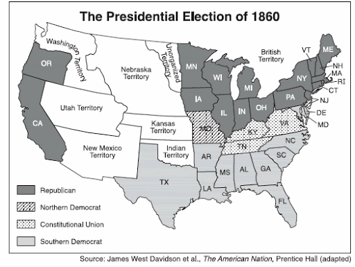 on the map below. What eventually became the name of the area where the Southern Democrats lived? (