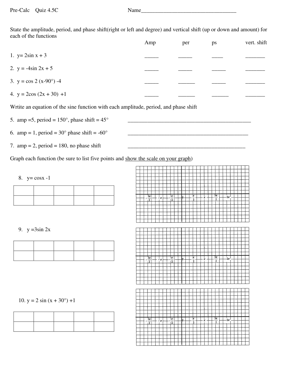 Fill in the chart with the 5 ordered pairs. Type them horizontally. No spaces. Angles should be in radians.