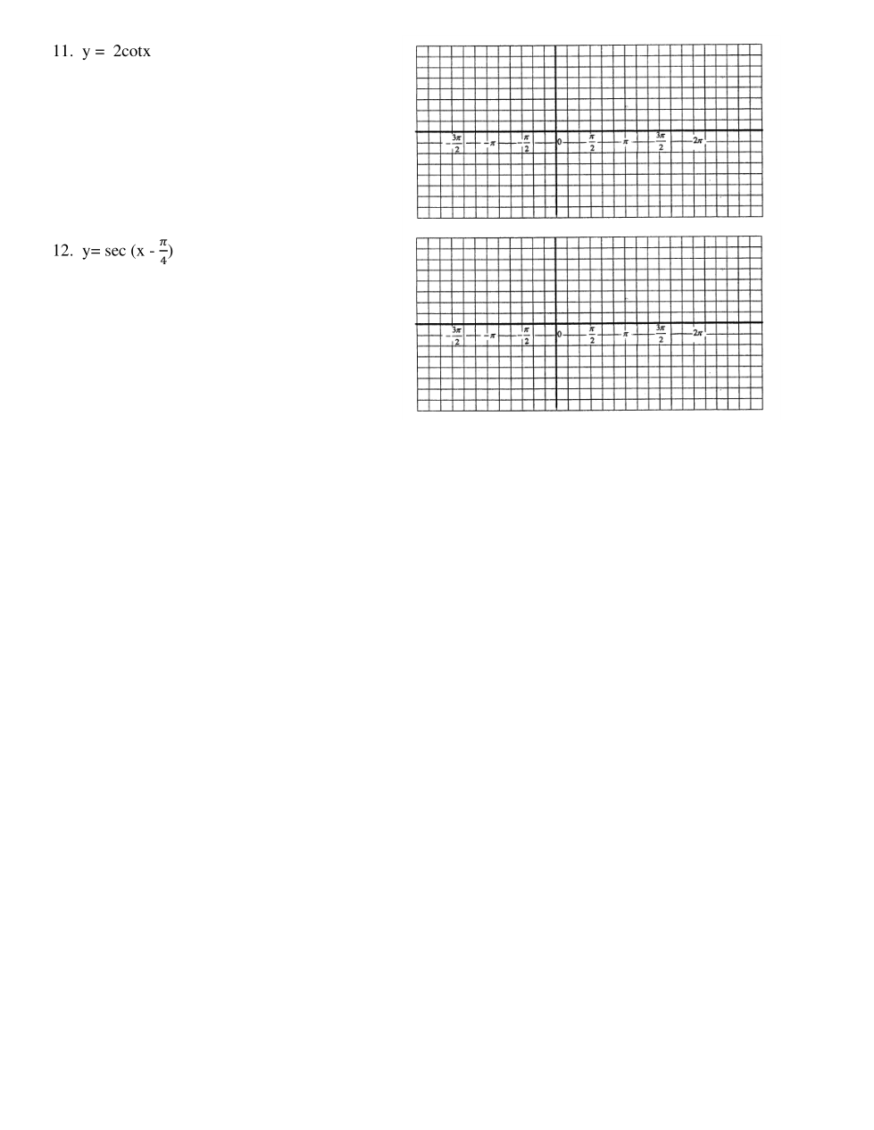 Fill in the chart with the 9 ordered pairs. Type them horizontally. No spaces. Angles should be in radians.