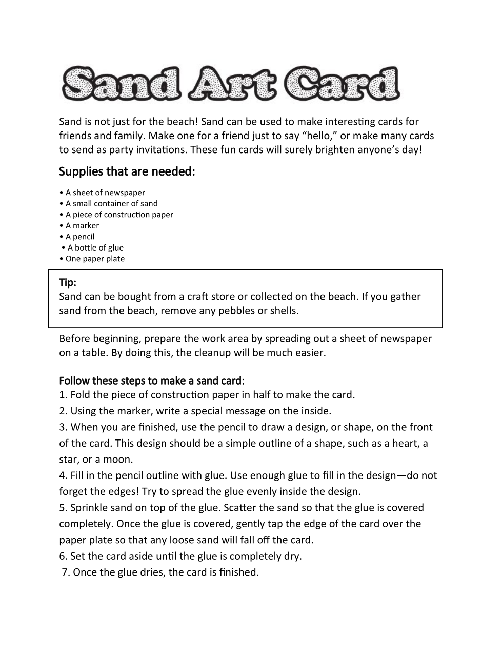According to the steps, which of these should be used to catch the loose sand from the card?