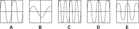 A sound wave can be represented as a trace on the screen of an oscilloscope. The diagrams show five traces, A, B, C, D and E, on the oscilloscope. All the traces are drawn to the same scale..