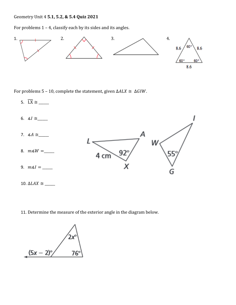 Given angle EBC ≅ angle ECB ≅ angle BEC, then classify triangle BEC. Choose only 2 names.