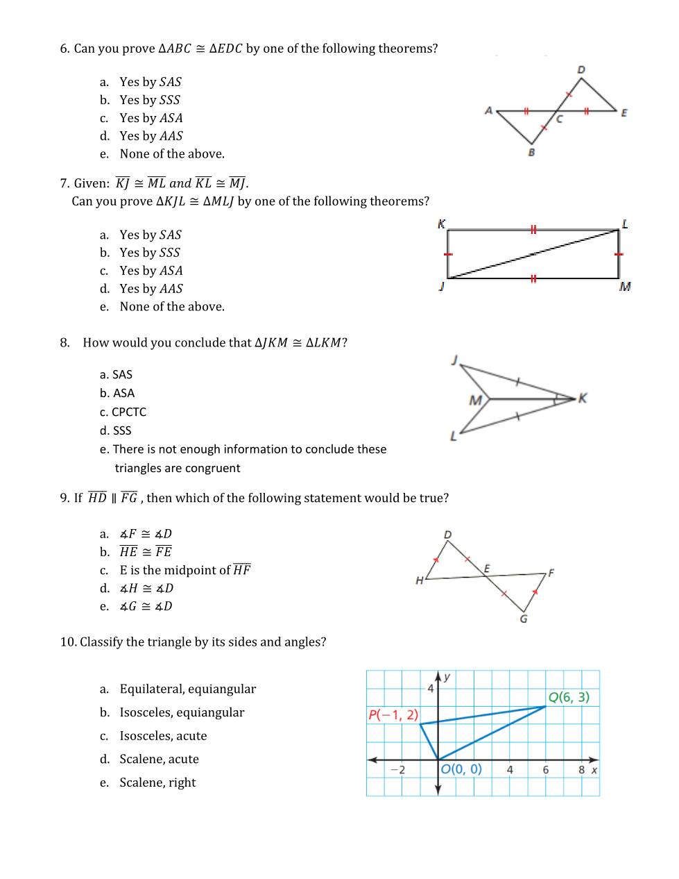 Can you prove triangle ABC is congruent to triangle EDC by one of the following theorems?
