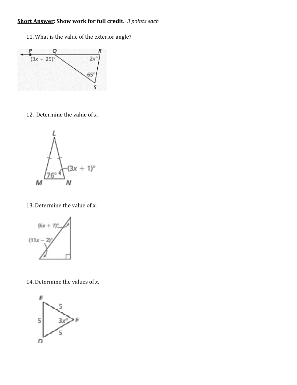 What is the value of the exterior angle?