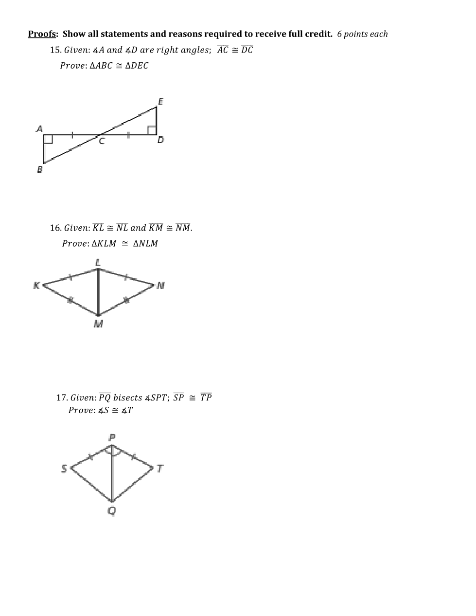 Prove that triangle KLM is congruent to triangle NLM by putting the steps of the following proof in logical order.