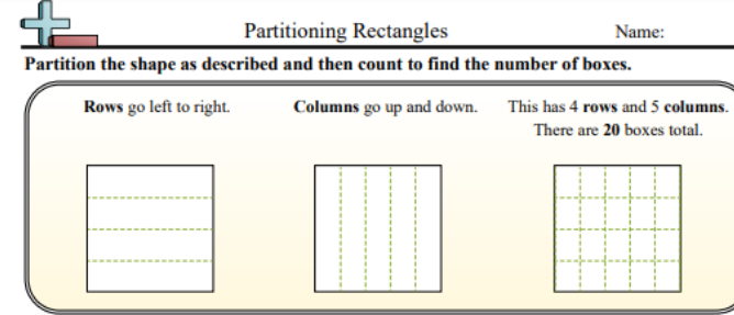 Parition (or split up) a rectangle into 2 rows and 2 columns. See the example above of a rectangle partitioned into 3 rows and 2 columns.