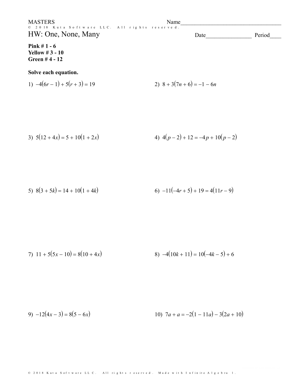 Ocean Lakes Algebra 1 HW Unit 1 Equations