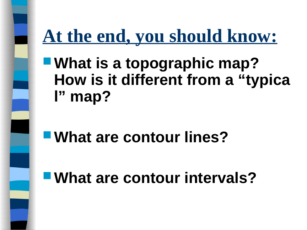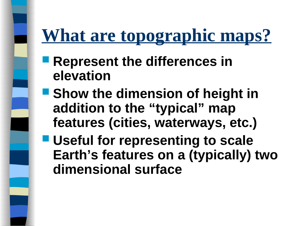 Discuss with your neighbor, or think to yourself, how are these three maps different. Map C is a topographic map