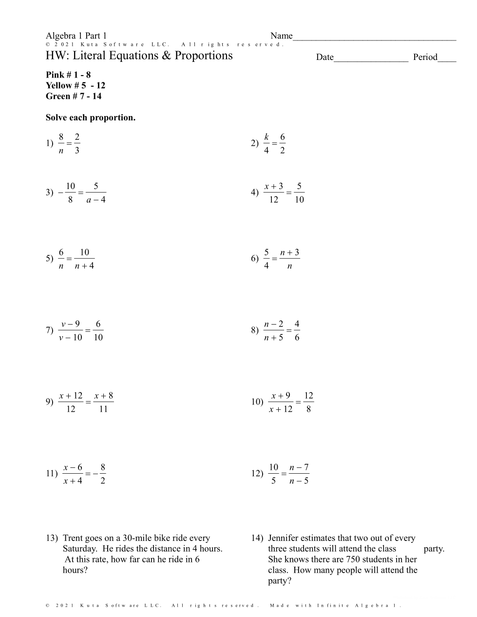 Solving Proportions Homework