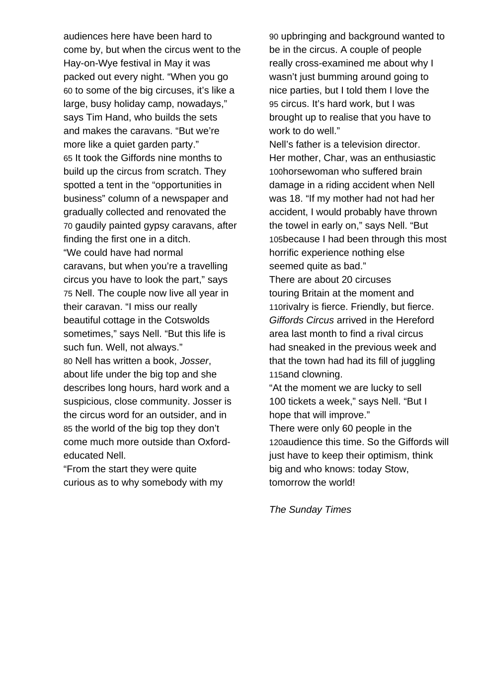 Which of the following statements about Giffords Circus is true according to lines50-64?