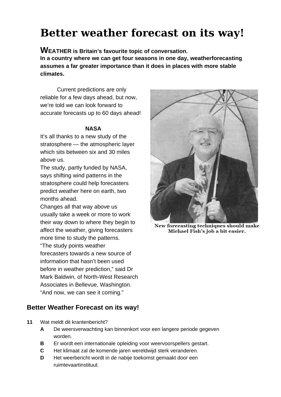 Welke van onderstaande beweringen staat niet in het antwoord van