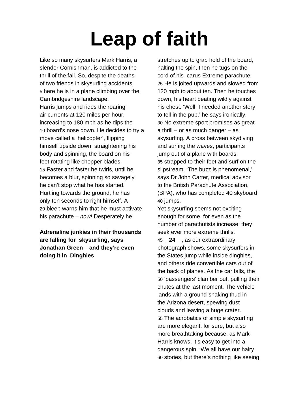 ‘We all have our hairy stories’ (lines 59-60).What does Dave Sturgeon mean when he says this? All skysurfers