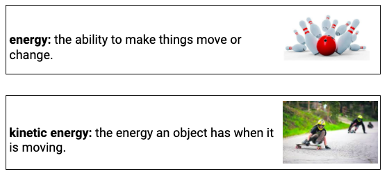 In the SIM, The more yellow an object is, the more kinetic energy it has.