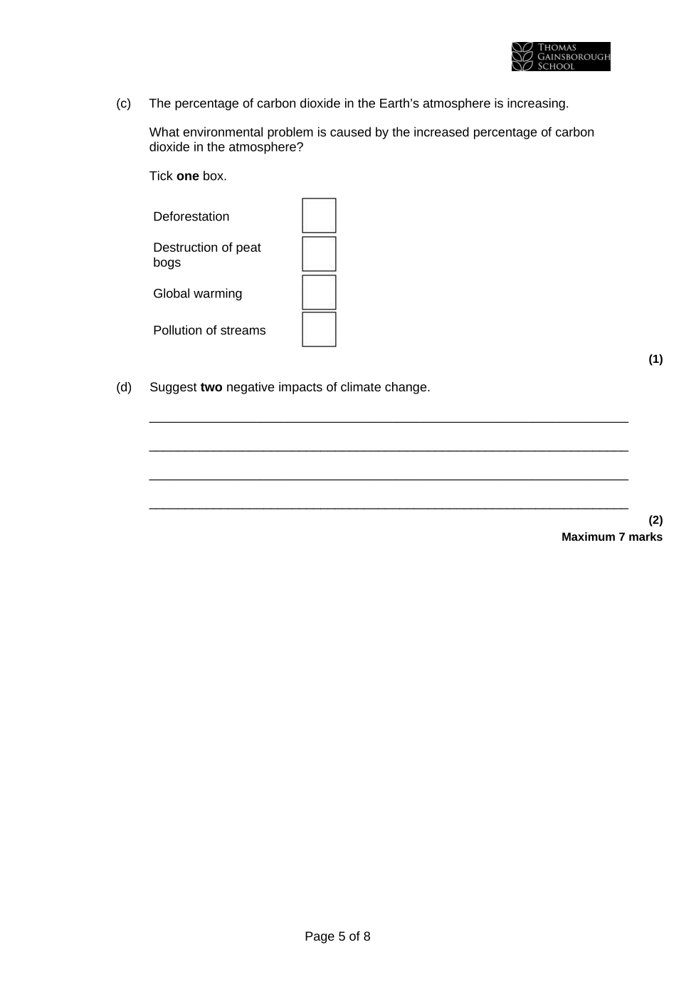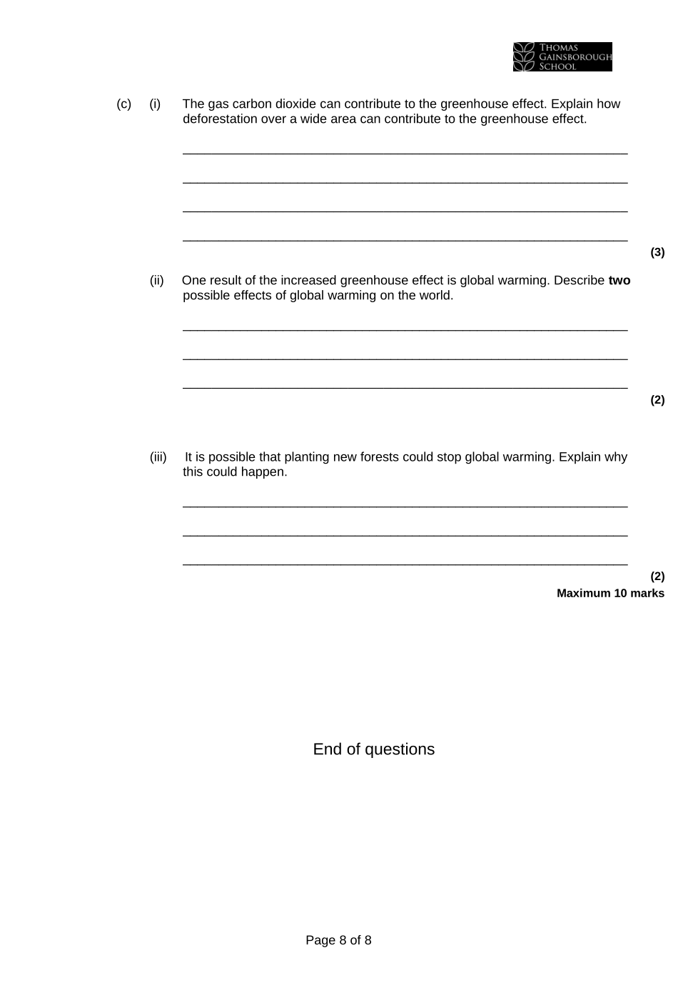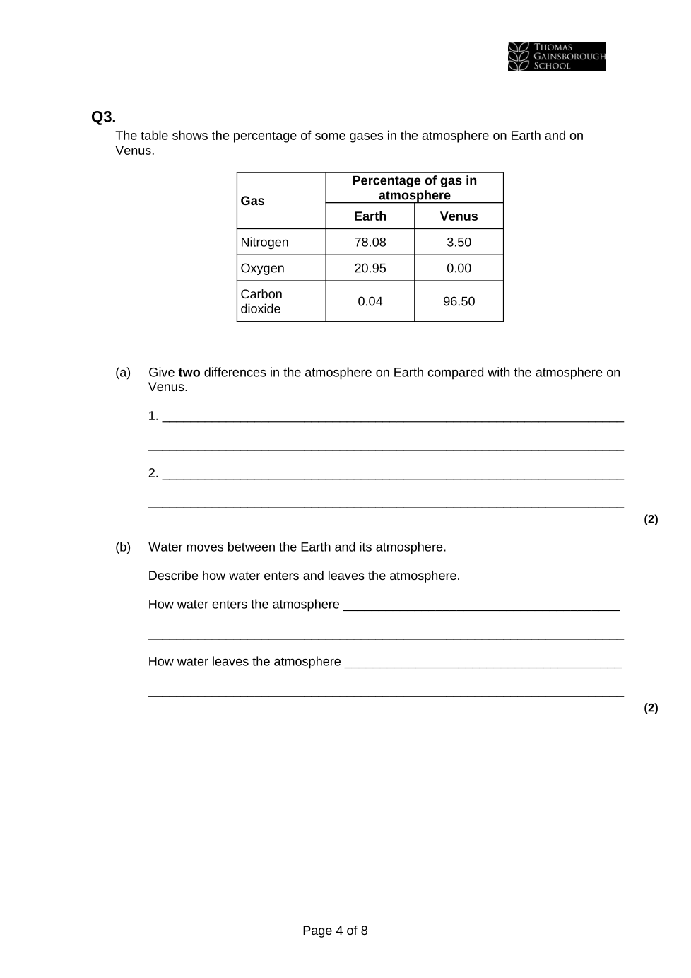 TGS Year 8 Chemistry on Earth EOT