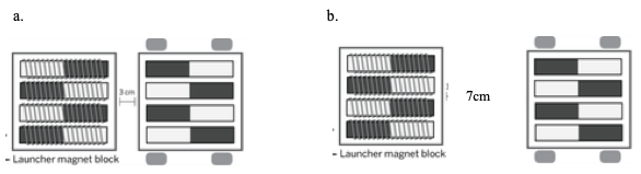 Analyze the two magnetic systems below. Why do you think one pair of magnets will move at a greater velocity than the other pairs?