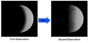 Tania went outside and made two observations of the Moon that were several days apart. Her observations are shown in the diagram above. The light part of the Moon appeared to get larger over time. Why did this happen?