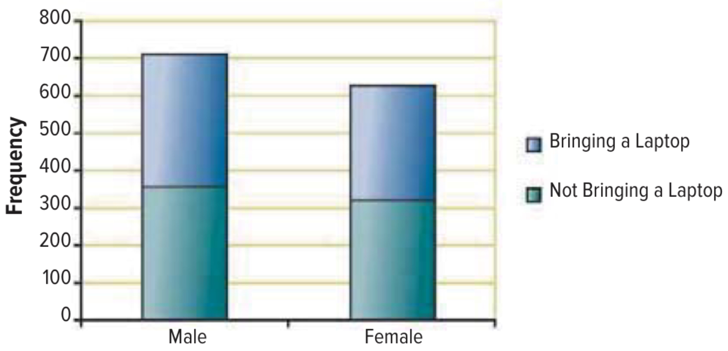 Which gender had a greater proportion bring a laptop?