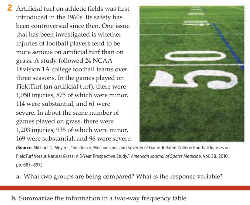 On which type of field was a player more likely to have a severe injury? Explain how you determined your answer.