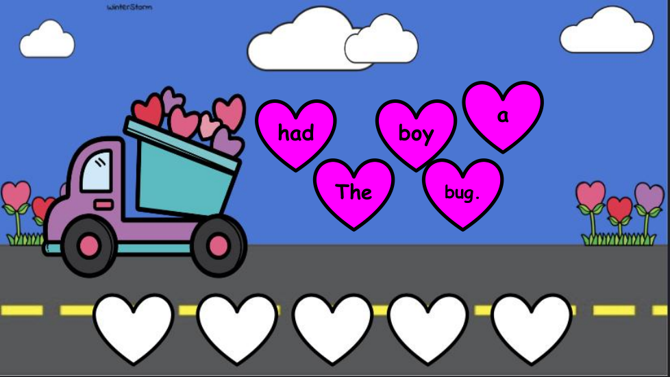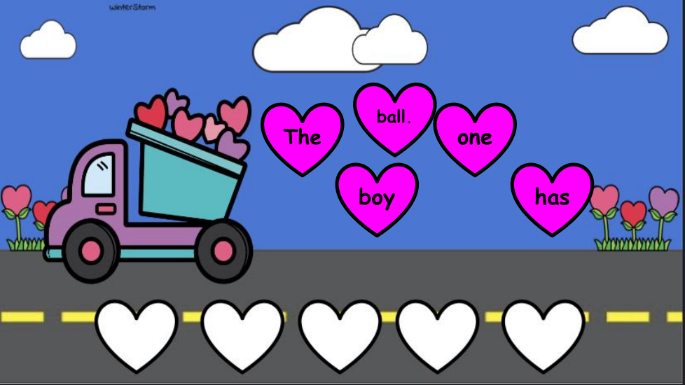 Type or use the whiteboard to write the correct order of the sentene. Make sure your sentence:1. Has an uppercase letter at the beginning.2. It makes sense.3. There is puntuation at the end.