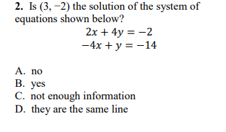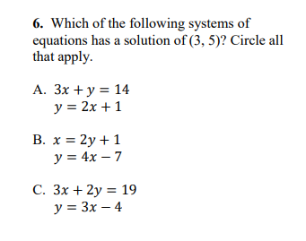 Show all your work for credit! You must solve by graphing, elimination, or substitution for full credit. Don't guess and check.