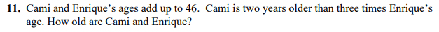 11b How old is Enrique from the previous problem? If your work for Enrique's age is shown on the previous problem, you don't have to show it twice. If you did not show your work for Enrique's age, show it here.