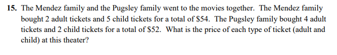 How much is a children's ticket from the previous problem? If you showed your work in the previous problem you do not have to show it here. If you did not solve for the child ticket price, show your remaining work here.