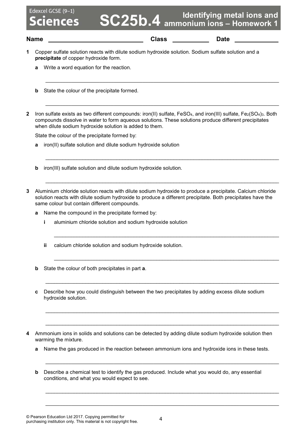 Describe how you could distinguish between the two precipitates by adding excess dilute sodium hydroxide solution.