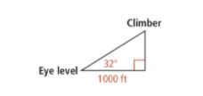 You are standing at the bottom of a cliff and see a climber. You are 1000 ft from the face of the cliff and the angle of elevation from you to the climber is 32o. Find the height of the climber from the ground in feet. See Fig