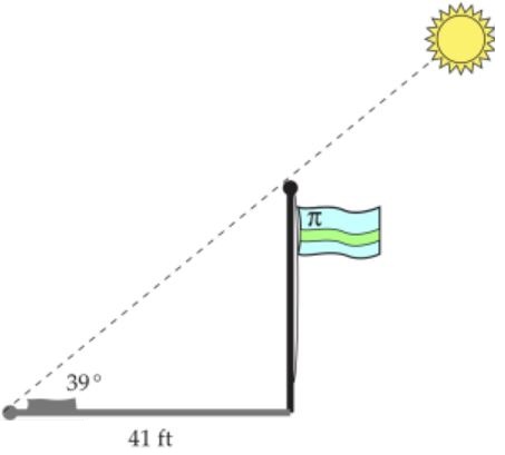 A Flag casts a shadow of 42 ft. Angle of Elevation from the Tip of the shadow to the Sun is 39o. Find the height of the Flag in feet. See Fig below